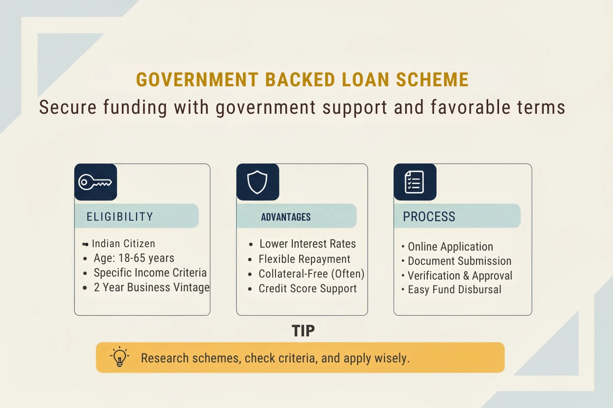 - MSME Loan Schemes (like CGTMSE – Credit Guarantee Fund Trust for Micro and Small Enterprises)